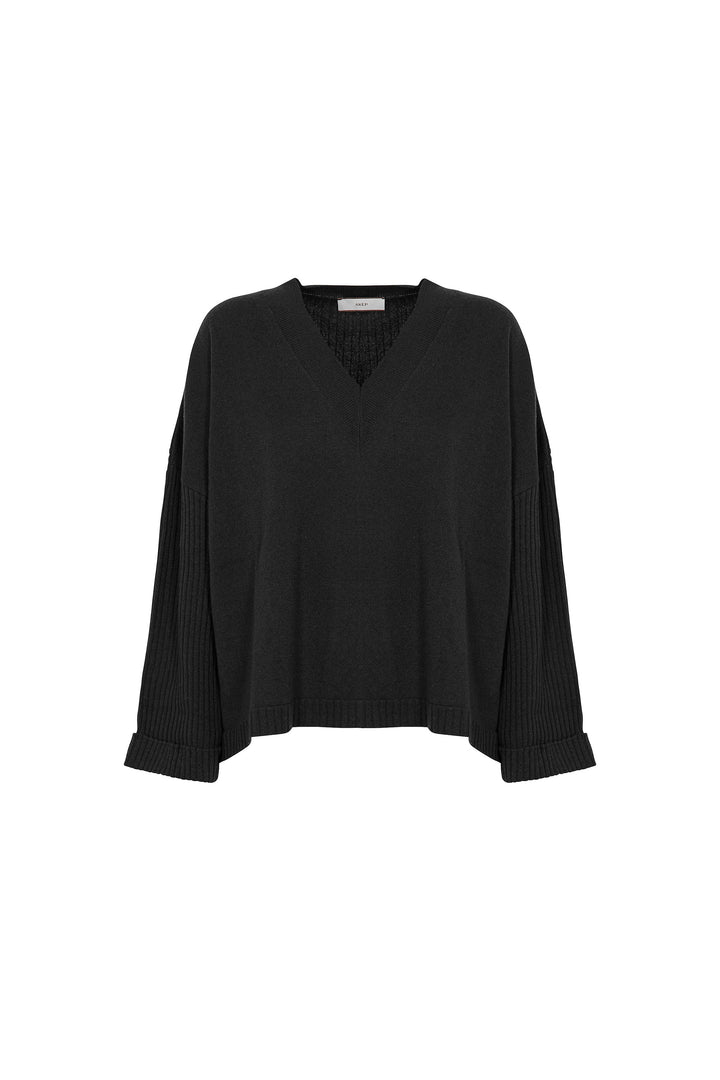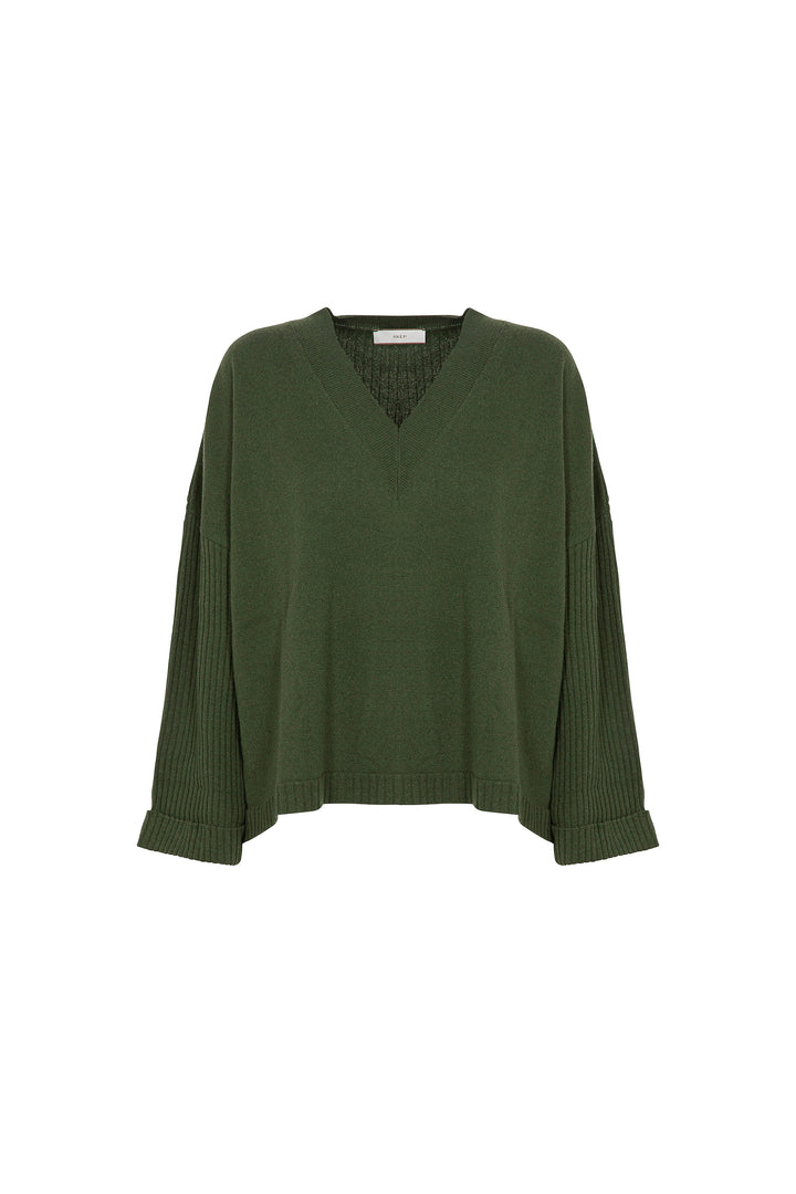 Maglia in cashmere con scollo a "V" e maniche a tre quarti. La vestibilità morbida e il filato leggero di questa polo la rendono un capo versatile per qualsiasi outfit.
